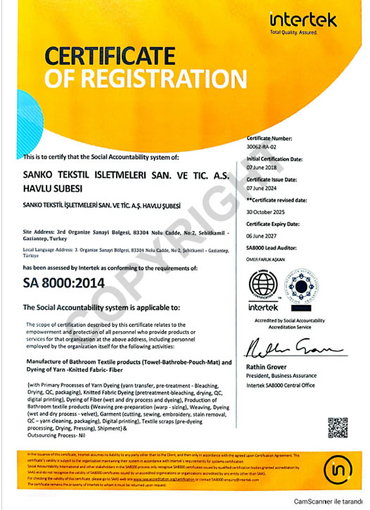 OEKO-TEX Confidence In Textiles Standard 100 Certificate