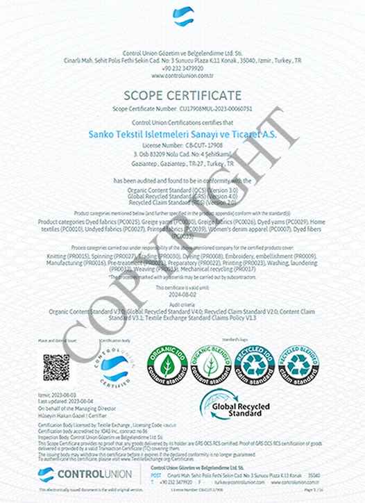 OEKO-TEX Confidence In Textiles Standard 100 Certificate