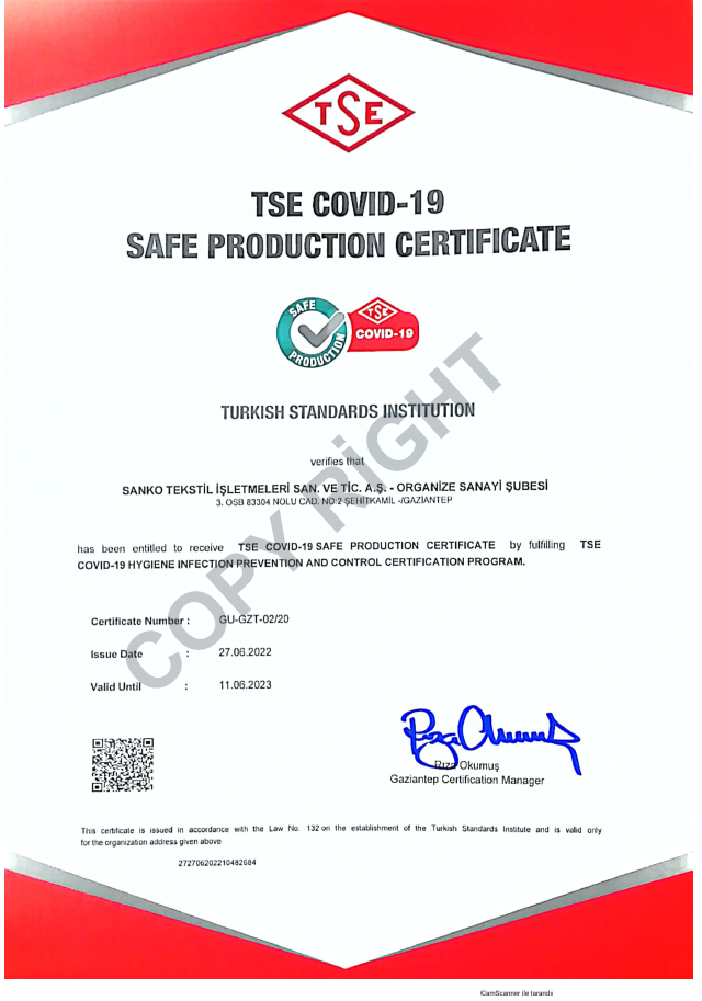TSE COVID-19 SAFE PRODUCTION CERTIFICATE